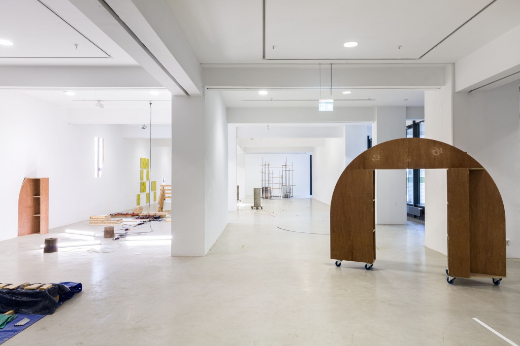 The specific configurations of sculptural, installative, auditive and performative components are compiled associatively, from the thematic fields of (sportive) games, dwellings – nomadic lifestyles, camping and Robinsonesque sceneries ... the goal is not a naturalistic, illustrative reproduction ratio, more a parallel movement to phenomena of play and nomadism that draws from the artistic stock of the participating persons.
